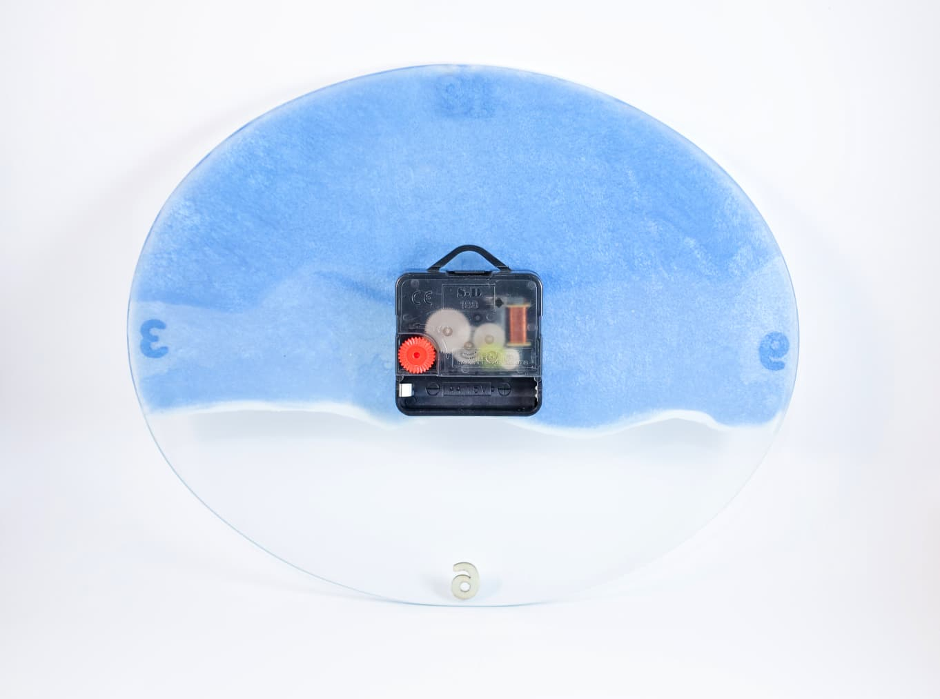 Ceas de perete oval din sticlă lucrat manual – “Valuri Albastre” (22x28x4 cm)